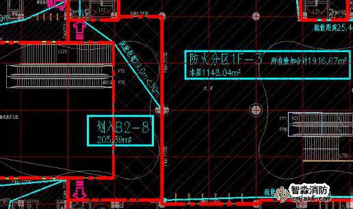 通過和設計單位分析研判,防火分區 B2 - 8( 一層平面) 屬于中庭空間,設計時滿足《建規》第 5. 3. 2條規定。防火分區 1F - 3( 二層平面) 、防火分區 5F- 4( 四層平面) 、防火分區 5F - 5( 四層平面)都各自有 1 個獨立的直通室外的安全出口,另一個安全出口則借相鄰防火分區,要滿足《建規》第 5. 5. 9 條,采用防火墻與相鄰防火分區進行分隔,原平面上在該處設有防火卷簾的位置調整為防火墻即可。
